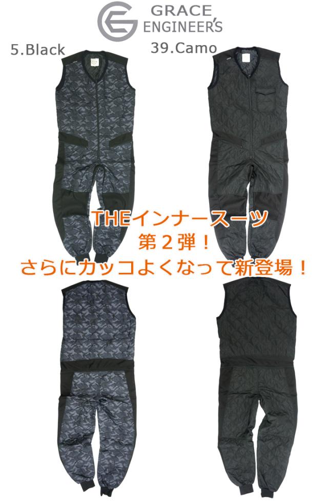 防寒キルティングインナースーツ グレースエンジニアーズ GE-2042 袖無し インナーつなぎ 防寒着 防寒服【即日発送】
