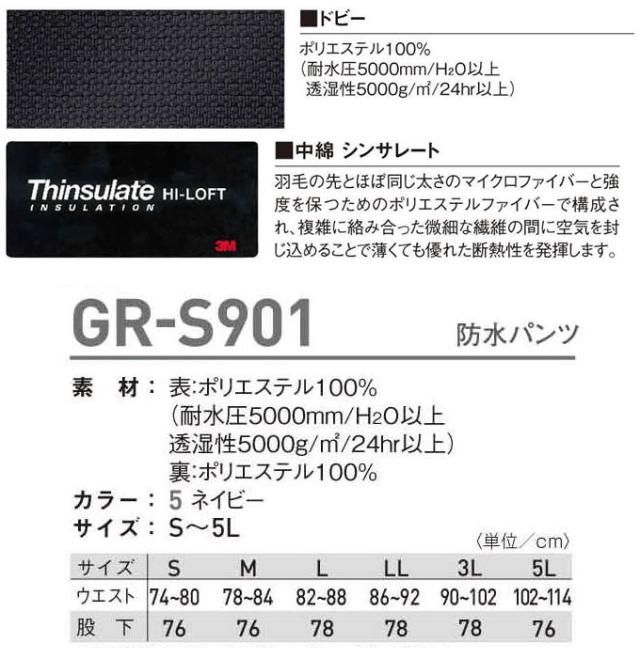 タカヤ商事 防水防寒パンツ GR-S901 (防水防寒ズボン) (防寒服) (防寒着) GR-S900シリーズ【送料無料】