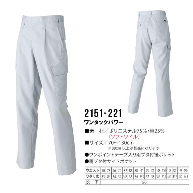 寅壱 ワンタックパワースラックス ウエスト70-100 速乾性 静電気防止 作業服 作業着 2151シリーズ 2151-221