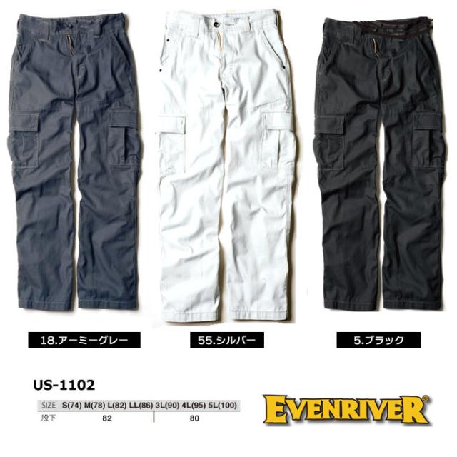 イーブンリバー EVENRIVER カーゴパンツ US-1102 ヘリンボーン素材 作業着 作業服 作業ズボン カーゴズボン 1107シリーズ【US1102】