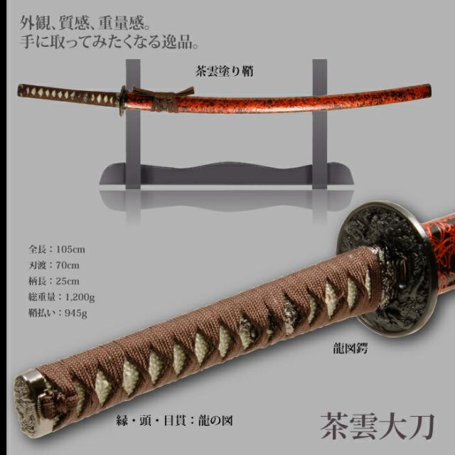 日本刀 雲シリーズ 茶雲 大刀 模造刀 鑑賞用 刀 日本製 侍 サムライ 剣 武器 レプリカ 幕末時代 おもちゃ お土産 おみやげ プレゼント 外国人 喜ぶ 新選組 新撰組 時代劇 稽古 芝居 お芝居 小道具 玩具 仮装 変装 コスプレ