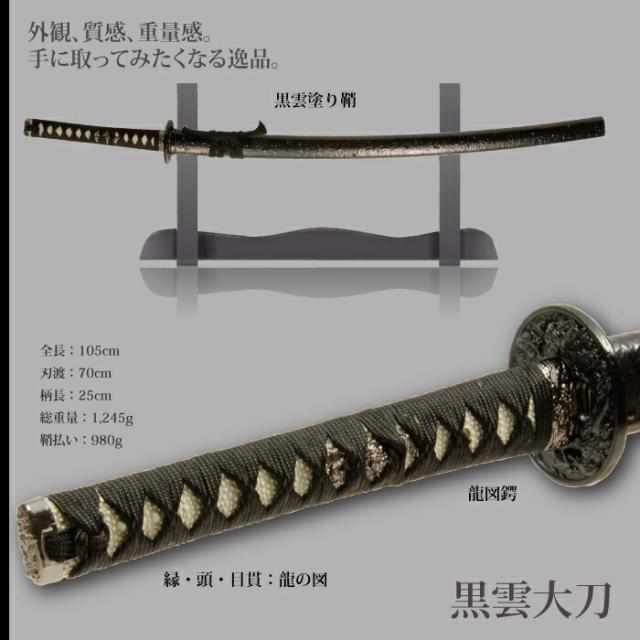 日本刀 雲シリーズ 黒雲 大刀 模造刀 鑑賞用 刀 日本製 侍 サムライ 剣 武器 レプリカ 幕末時代 おもちゃ お土産 おみやげ プレゼント 外国人 喜ぶ 新選組 新撰組 時代劇 稽古 芝居 お芝居 小道具 玩具 仮装 変装 コスプレ