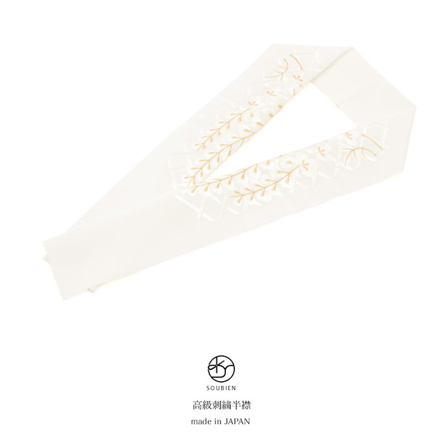 成人式 半衿 半襟 刺繍 振袖 白 ホワイト 金色 藤棚 花 和装小物 着付け小物 フォーマル 女性 レディース 日本製