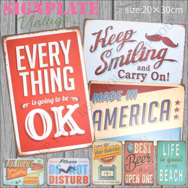 【4枚までメール便280円対応】ブリキ看板 文字 メッセージ 20×30cm ビンテージ メタルサインプレート カフェ バー アメリカン┃