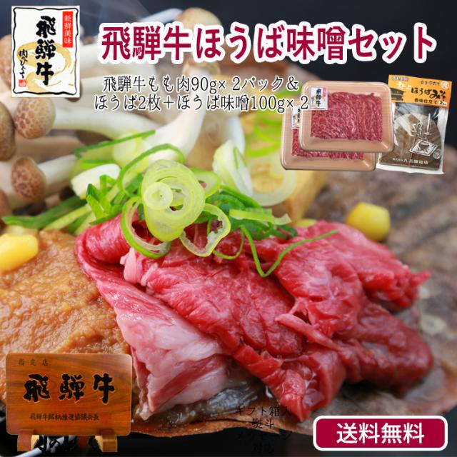 肉 ギフト 牛肉 飛騨牛 もも肉 朴葉味噌セット(もも肉180g&ほうば2枚+ほうば味噌100g×2) ほうば味噌 和牛 贈答品 誕生日 内祝 お礼 御礼 お返し のし可 お取り寄せ 飛騨 岐阜県 郷土料理 お取り寄せグルメ 食べ物 送料無料