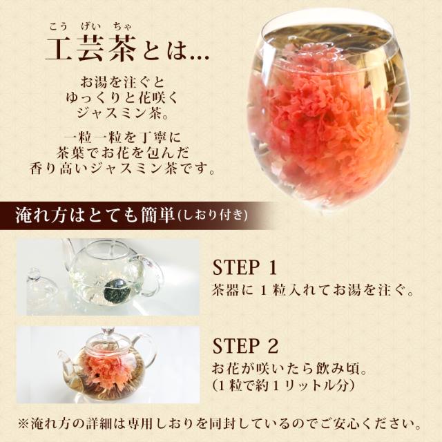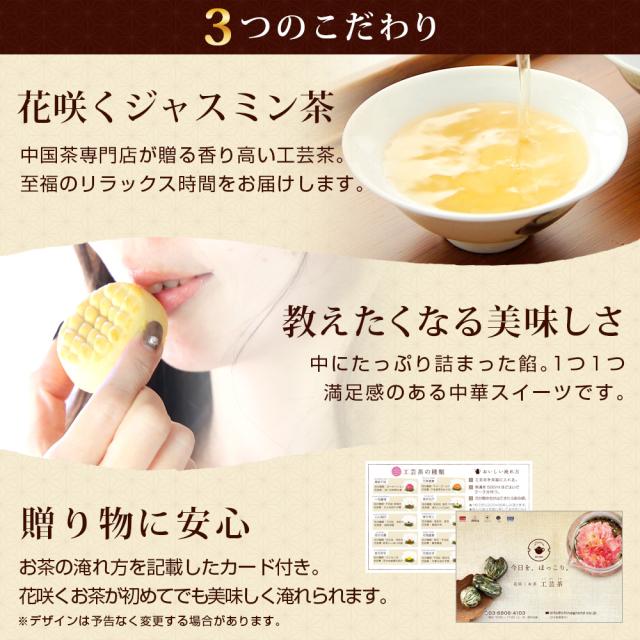 | 商品説明 | 1.目の前で花が咲く!“いつもありがとう”感謝の気持ちを込めてあの人へ♪工芸茶でとびきりの感動を。香り高いジャスミン茶にうっとり。 2.人気のプチスイーツは女性のかわいいお口でも食べやすいサイズ感。きれいに塗ったティントだって汚しませんよ♪ 3.表面には工芸茶のお話。裏面には美味しい淹れ方の説明があります。初めての方にも安心してほっこりティータイムを満喫できます♪ |