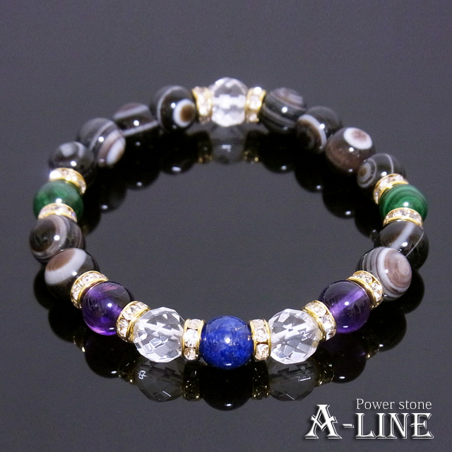 パワーストーン ブレスレット AAAラピスラズリ&AAAマラカイト&天眼石&アメジスト8mm 厄除け 魔除け PW-3058