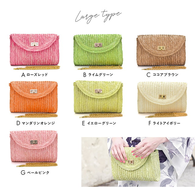 暖かい季節の着物や浴衣によく合う、カジュアルなクラッチバッグです。