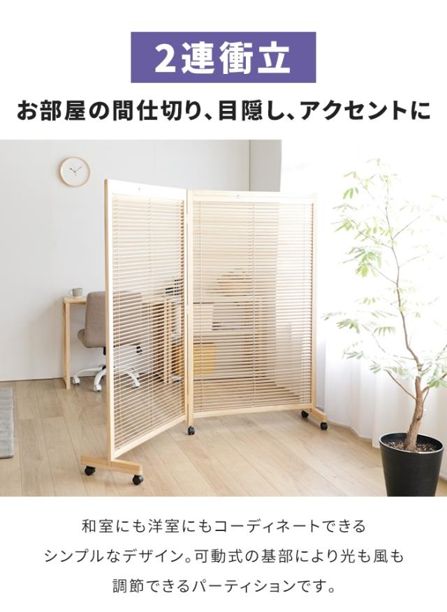 衝立 2連 高さ155cm キャスター付 ブラインド衝立 自立タイプ 開閉式 ブラインド 採光 ついたて 仕切り 和風 目隠し パネル 2つ折り 二つ折り 折りたたみ 折り畳み 木製 洋風 和風 パーテーション 間仕切り モダン おしゃれ 北欧 新生活 一人暮らし