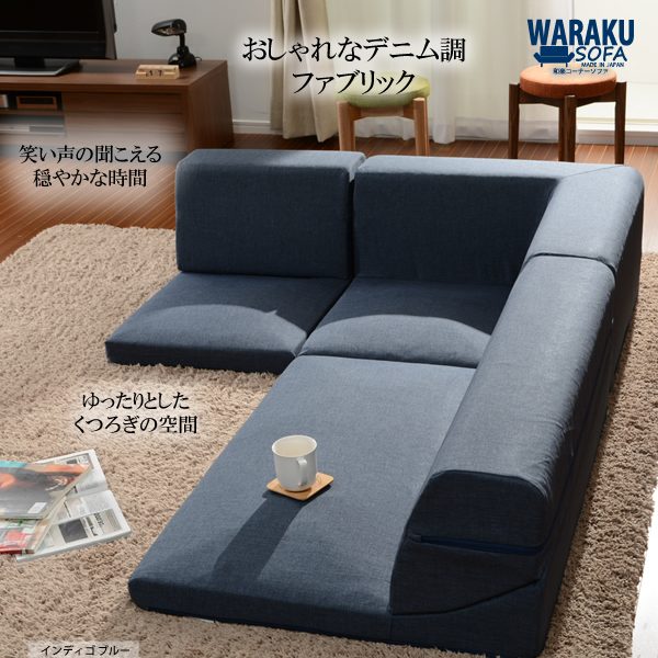 ソファ ソファー 3人掛け ローソファー コーナーソファー L字 おしゃれ こたつ 囲い 囲む リビング 日本製 送料無料 デニム調