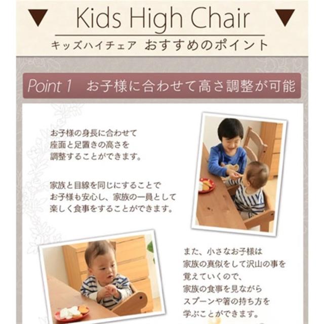キッズハイチェア キッズチェア 天然 木製 3段階高さ調節付き キッズ チェア 子供 イス 椅子 ベビーチェア プラザセレクト 送料無料