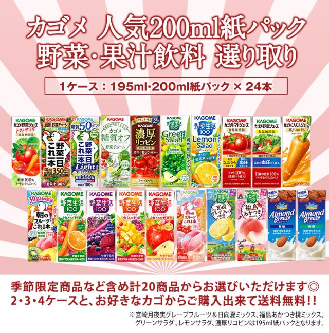 カゴメ 野菜生活 48本セット 200ml 紙パック 24本×2箱 よりどり 野菜ジュース 【3〜4営業日以内に出荷】[送料無料]