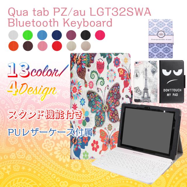 Qua tab PZ au LGT32SWA / Qua tab PZ 10専用 レザーケース付き Bluetooth キーボード☆日本語入力対応☆au Qua tab PZ LGT32SWA キーボードケース☆全16色