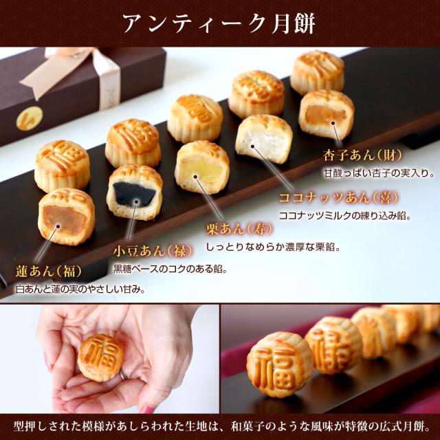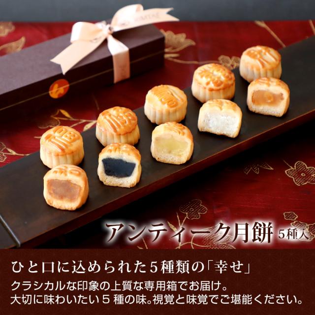 リムテー お歳暮 冬ギフト 中秋節 プチギフト スイーツ 【アンティーク月餅】月餅 お菓子 ギフト 詰め合わせ 5種 贈り物 プレゼント 焼き菓子 横浜中華街 縁起物 餡子 こしあん 中華菓子 還暦 長寿祝い 送料無料 誕生日