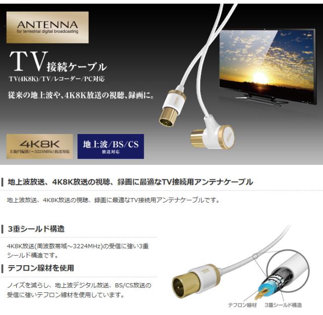■商品名:TV接続用アンテナケーブル 従来の地上波放送、4K8K放送の視聴、録画に最適 2m ホワイト
