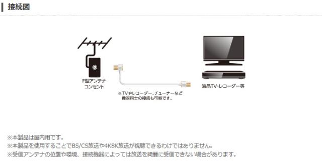 ■対応機種:F型テレビコンセントとF型端子付きテレビ、レコーダー、テレビチューナー付きパソコン、分配器、分波器など