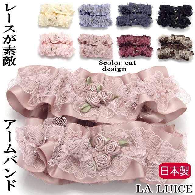 アームバンド ゴムバンド シュシュ ラルイス レース るいす LA LUICE 日本製 エリーゼ スリム レースカフス バラコサージュ 腕まくり 薔薇雑貨 薔薇柄 薔薇 姫系 バラ ローズ 花柄 レディース かわいい おしゃれ ギフト プレゼント