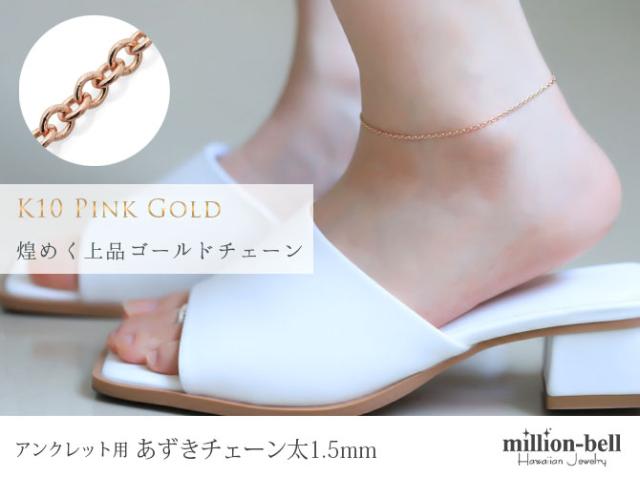 アンクレットチェーン あずきチェーン 太さ1.5mm K10ピンクゴールド 長さ選べる 20cm 〜25cm アンクレット チェーン ハワイアンジュエリー メンズ レディース 誕生日 プレゼント ホワイトデー 卒業式 入学式 【品番:CH176-A-R】