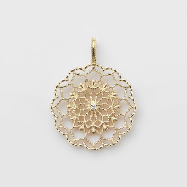イランやトルコのアラベスク(モスクの壁面に見られる、植物や動物をもとにした幾何学模様の装飾)に見られるような、エキゾチックな香りの漂う模様を、地金で繊細にデザインしています。無限に広がりを見せる幾何学模様をアレンジした地金のすかしチャーム。トルコでは神聖なモチーフとして扱われているチューリップをデザインし、ミックス感のあるエスニックムードを表現しています。大振りながらも軽やかで心地よい透け感は普段のスタイリングにアクセントをプラスします。※写真のネックレスは別売りです。<価格改定のお知らせ> 2026年2月4日(水)より、素材の価格高騰に伴い価格改定を行います。商品タグに記載している価格につきまして、旧価格のものが混在している場合がございます。ご了承くださいますようお願い申し上げます。※天然石や天然素材を使用しているものは、サイズ・色味・風合いの違いや、若干の傷、内包物の有無などに個体差があります。予めご了承ください。