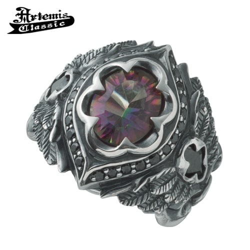 翼を主題に、大天使ミカエルを想起させる力強いシルエットのリング。センターには虹色の奥行きを湛えるミスティッククォーツをセットし、角度ごとに表情を変えるスペクトルが手元にドラマを添えます。羽根は一枚一枚を躍動的に彫り起こし、陰影まで計算した繊細なディテール。鏡面と燻しのコントラストが石の輝きをいっそう際立たせ、細部まで丁寧に仕上げました。厚みのあるボディは重厚でありながら、内側はなめらかで装着感は快適。存在感は“主役級”で、モードにもストリートにも映え、単体でコーデを引き締めます。アルテミスクラシックのハイエンドラインにふさわしい品格を備えた一本。翼モチーフが“飛躍”“上昇”をさりげなくイメージさせ、節目のギフトにも最適です。