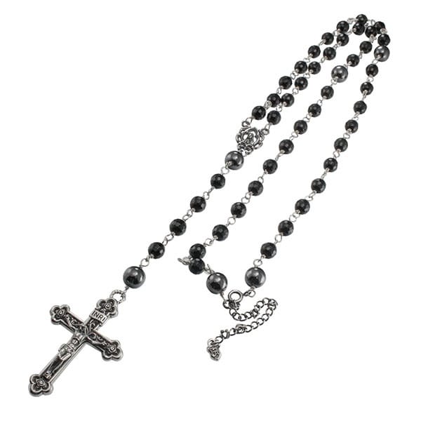 祈りを纏う、端正なロザリオ。微細なレリーフで聖母マリアを刻んだメダイと、キリスト像を立体的に表したクロスを組み合わせ、静謐な気配を胸元に。チェーンはカットオニキスと艶やかなヘマタイトを交互に連ね、光の角度で表情を変える深い陰影を描きます。適度な重量感で着け心地は快適。Tシャツやスウェットのストリートから、シャツやジャケットのモードまで幅広く調和し、単体でも重ね付けでも主役に。メダイと十字架は繊細な面構成で仕立て、品格ある存在感を実現。ブランドの監修×提携アトリエのクラフトマンシップで完成させた逸品です。品質刻印とロゴを刻し、専用ボックスでお届け。大切な方へのギフトにも、自分への祈りにも相応しい一本です。