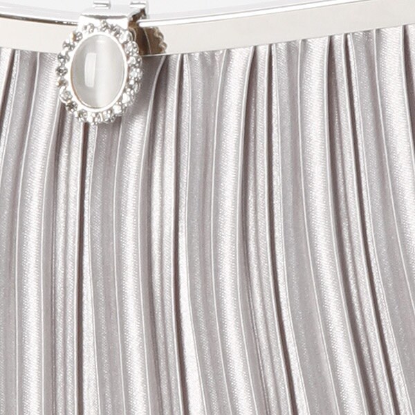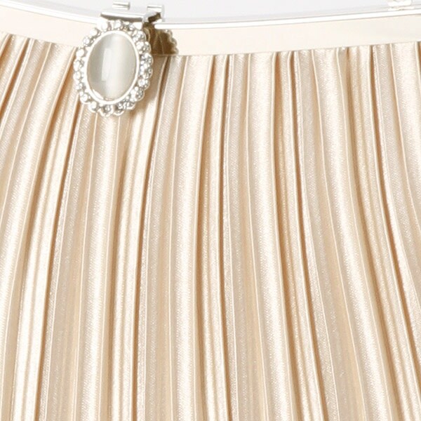 サテン素材でキレイなプリーツ加工がしてあり、留め金部分のビジューがワンポイントになってます。