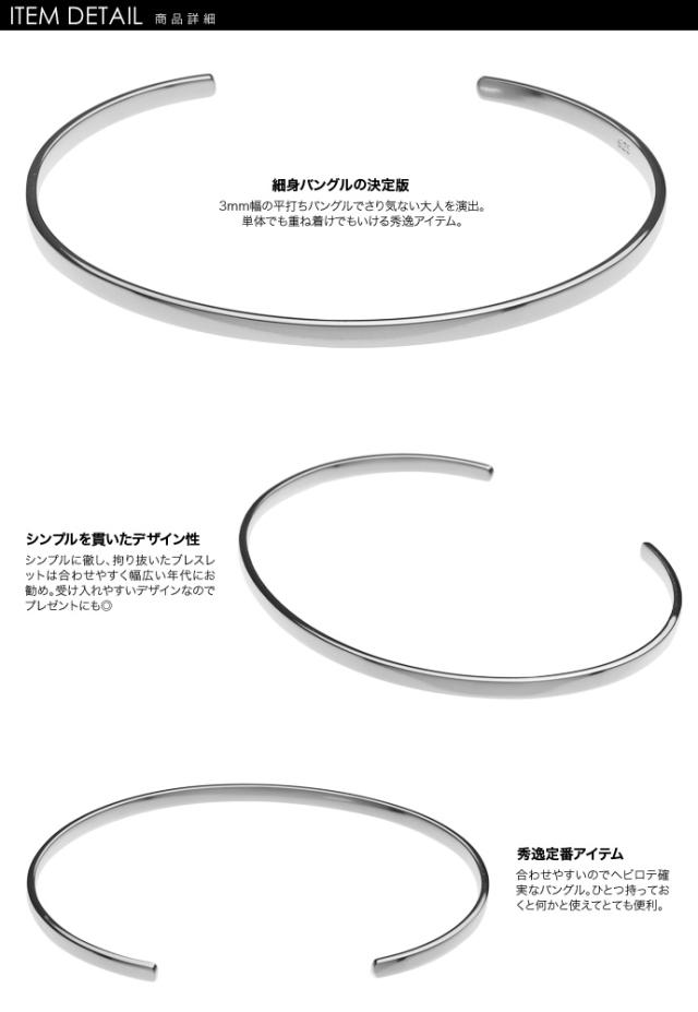 定番 3mm幅 プレーン バングル 平打ち シルバー925 アクセサリー シンプル ブレスレット メンズ シルバーブレスレット