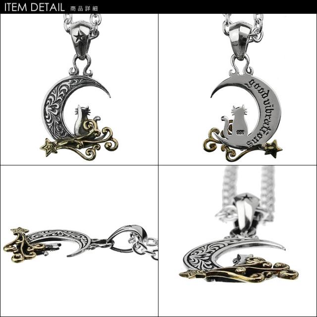 ■商品名:キャットヴァインムーンペンダント ネックレス メンズ (3mmアズキチェーン付きセット) 星 猫 ネコ アラベスク 唐草 三日月 月 シルバー925 アクセサリー シルバーペンダント