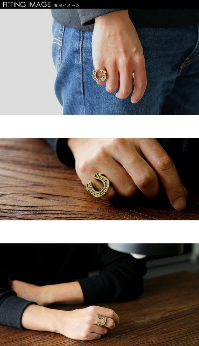 ■商品名:ホースシュー リング メンズ 指輪 メンズ ジルコニア 馬蹄 スター 星 アクセサリー ゴールド 馬蹄 スター ブラス 真鍮
