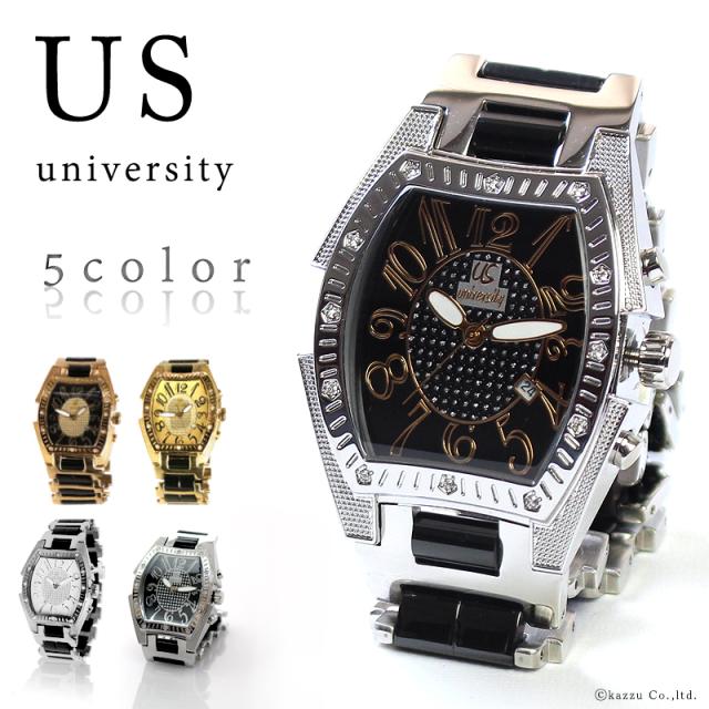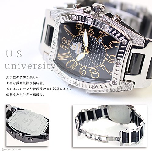 腕時計 メンズ ステンレス 防水 カレンダー付き 3気圧防水 ビジネス ブラックメッキ UNIVERSITY ユニバーシティ【US203】 ブランド 人気