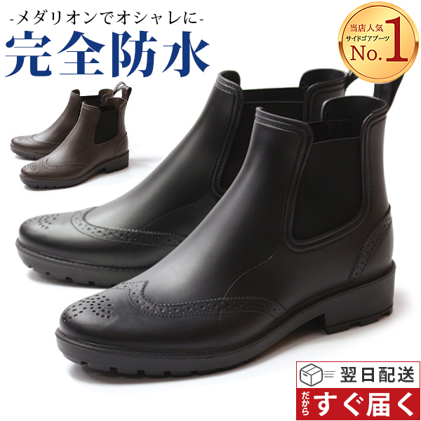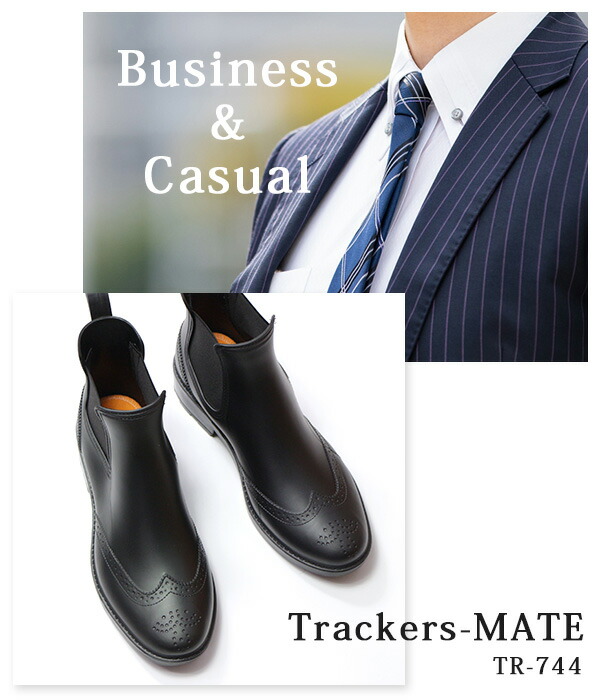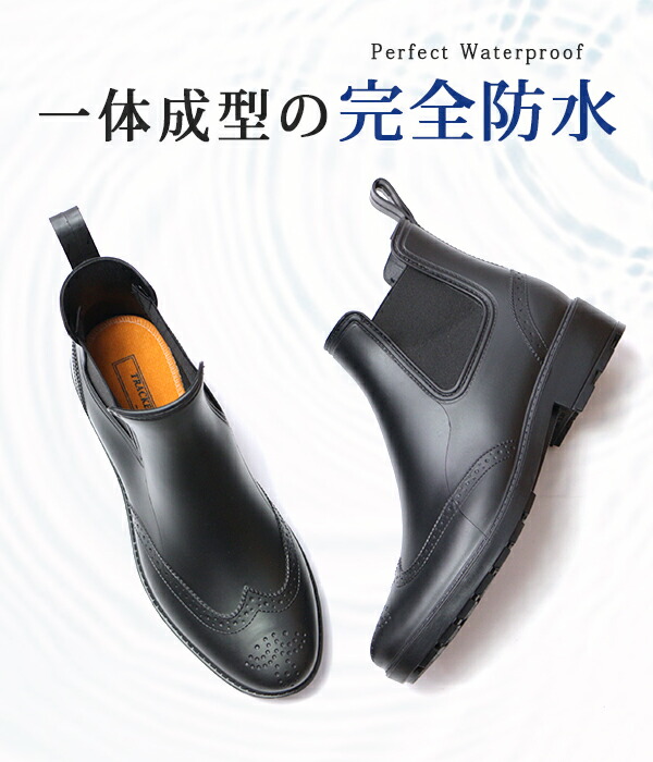 レインブーツ レインシューズ メンズ 長靴 靴 雨靴 ブーツ ショート 黒 茶 ブラック ブラウン 防水 雨の日 サイドゴアブーツ サイドゴア メダリオン カジュアルブーツ 軽量 軽い おしゃれ ビジネス 歩きやすい Trackers-MATE TR-744 ギフト