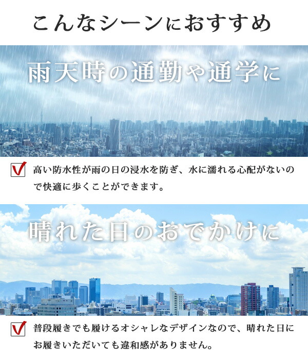 - レインブーツに見えなくてデザインがオシャレで、雨の日じゃなくても使えそうです