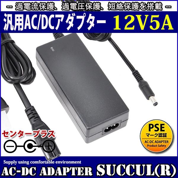 汎用ACアダプター 12V 5A 最大出力60W PSE取得品 出力プラグ外径5.5mm(内径2.1mm) 1年保証付 (LEDテープライトに使用可)