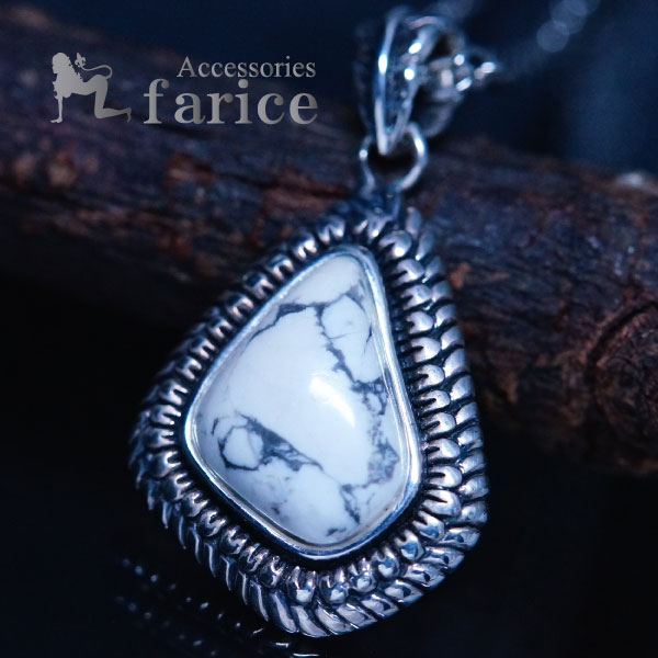 ★艶消しの質感と白く美しい色彩を持つ【精神の安定と健康を高める石/ハウライト】を使った高級感タップリのメンズ&レディース・インディアンジュエリーシルバー925製ペンダントネックレス!!