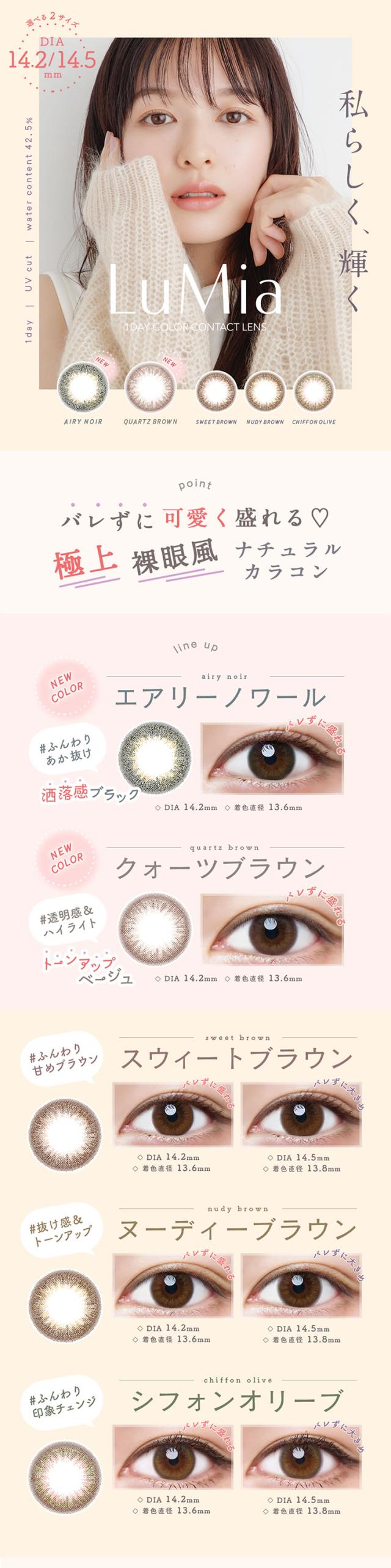 ★ポイント10%還元★ ルミア(10枚) ワンデー ◆ カラコン ワンデー 度あり カラコン カラーコンタクト コンタクトレンズ ワンデー 1日使い捨て 1day ブラウン 14.2 14.5 度あり 度なし ナチュラル 森絵梨佳 クォーツブラウン エアリーノワール◆