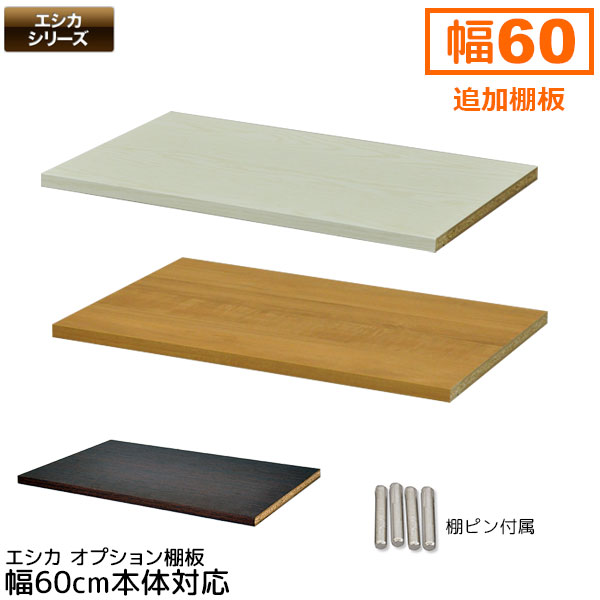 セレクトエシカ追加オプション棚板 幅60cm(約)タイプの本体用(SS-OP60) (棚板のみ1枚) 幅55.3cm 奥行35.9cm 高さ1.8cm ホワイト(白色) ライトブラウン(茶色) (取付け用の棚ピンは付属しています)