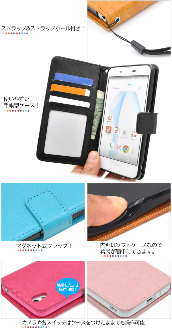 SH-02J/SHV37/DM-01J//SH-M04/SH-M04-A 横開き 手帳タイプ かわいい メンズ ビジネス 白 黒 ブラック ネイビー 青 赤 レッド ビビットピンク オレンジ シンプル きれい スタンドケース 動画視聴 保護カバー スマホカバー スマホケース 保護ケース ケース