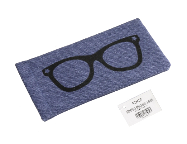 デニム生地のメガネケースで、裏表眼鏡柄か無地どちらかになります。(種類は選べません)