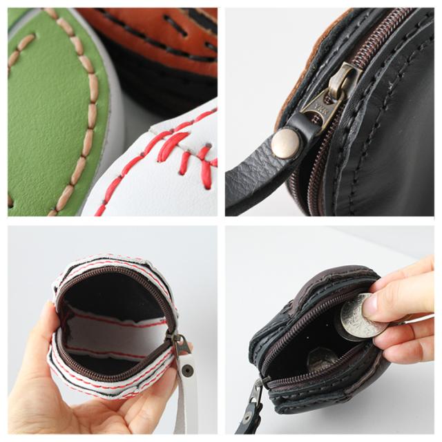 本革 コインケース サッカー 野球 バスケットボール ラグビーパッチワーク コインポーチ コインケース 小銭入れ 財布 ミニ ハンドメイド ストラップ付き ファスナー メンズ レディース 牛革 バイカー 【ギフト】 cp039