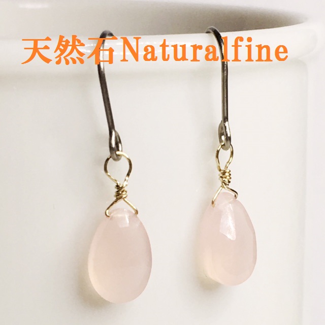 ピアス カルセドニー 天然石 チタン金具 イヤリング 樹脂金具 しずく パワーストーン ピンクカルセドニー 縁を繋ぐ