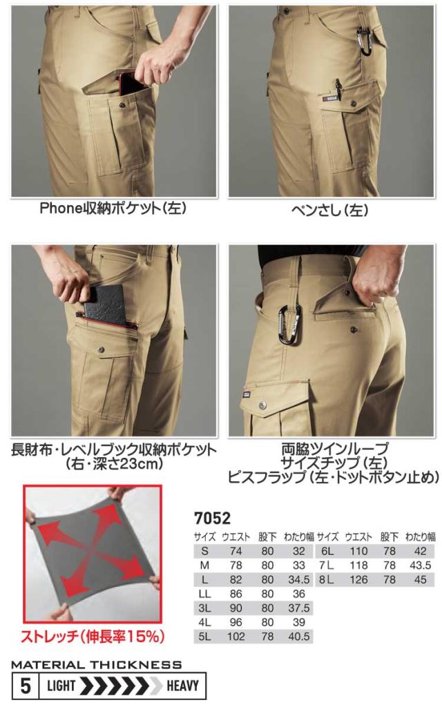 BURTLE バートル カーゴパンツ 7052 秋冬