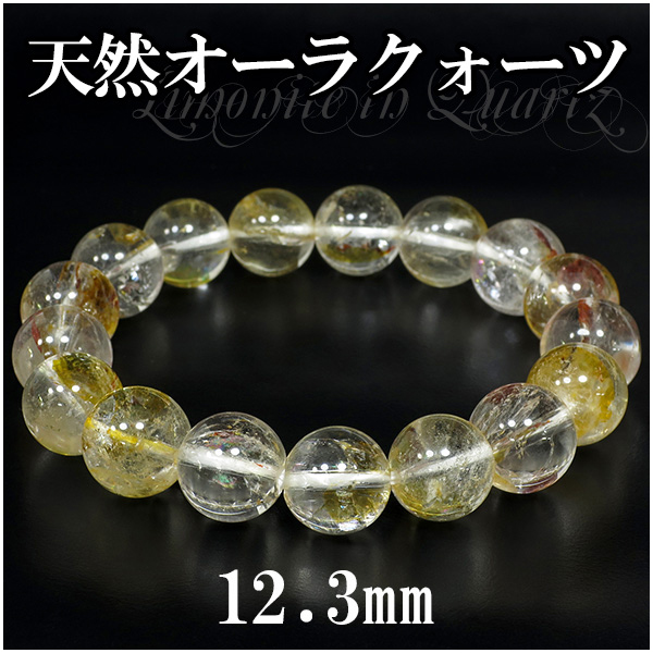 12.3mm 18.5cm 高品質 ヒマラヤ産 天然オーラクォーツ ブレスレット (メンズL、レディースLLサイズ)