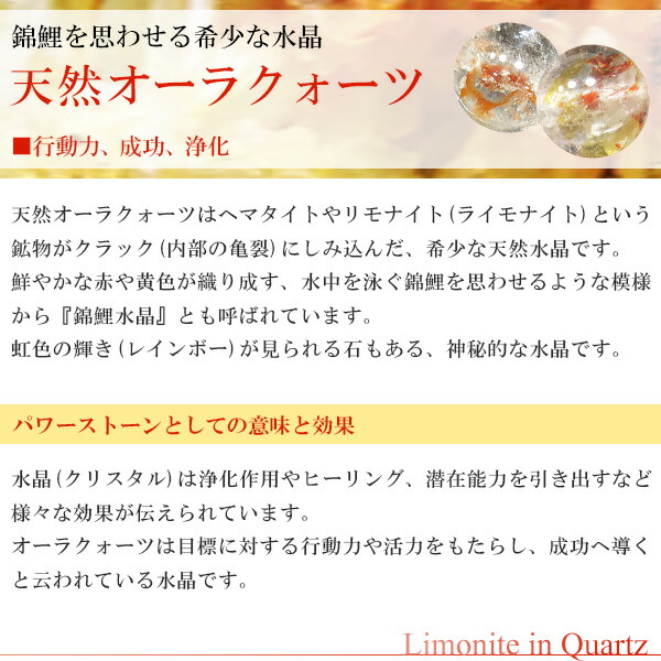 オーラクォーツは目標に対する行動力や活力をもたらし、成功へ導くと云われている水晶です。