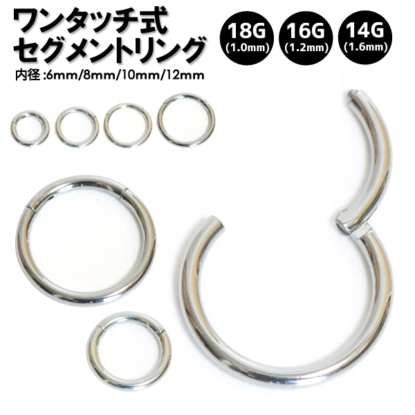【メール便対応】ボディピアス ワンタッチ式 セグメントリング リングピアス フープピアス 14GA(1.6mm) 16GA(1.2mm) 18GA(1mm) サージカルステンレス316L【セグメント ワンタッチ イヤーロブ ダイス コンク】ボディーピアス ┃