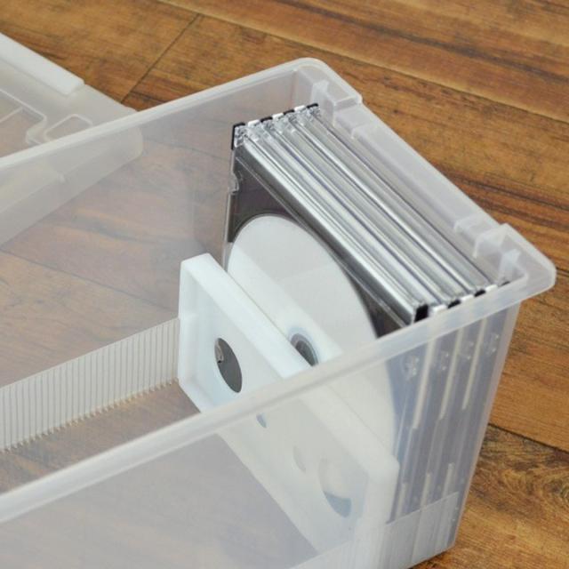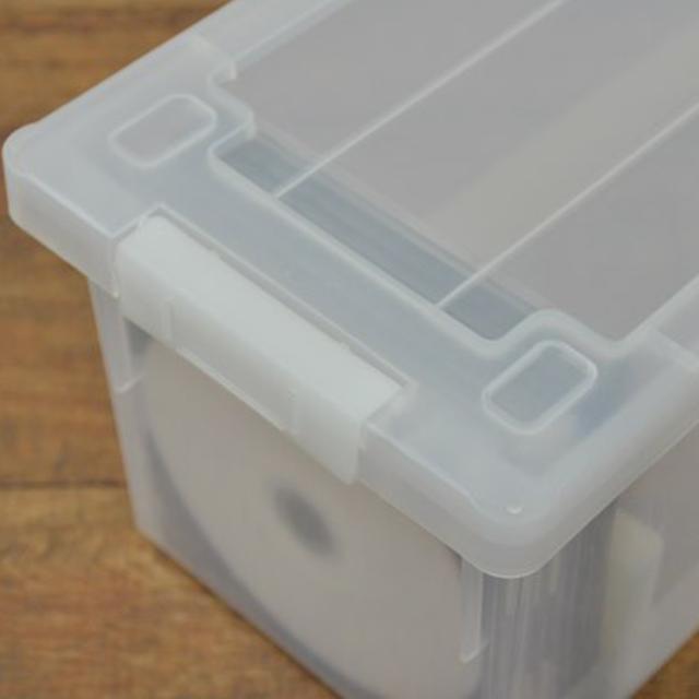 頑丈な作りの収納ボックスなので、中の物をしっかり保護します。フタがあるから大切なメディアにホコリが溜まりません。バックル式のロックが付いていますので、しっかり閉じることができます。