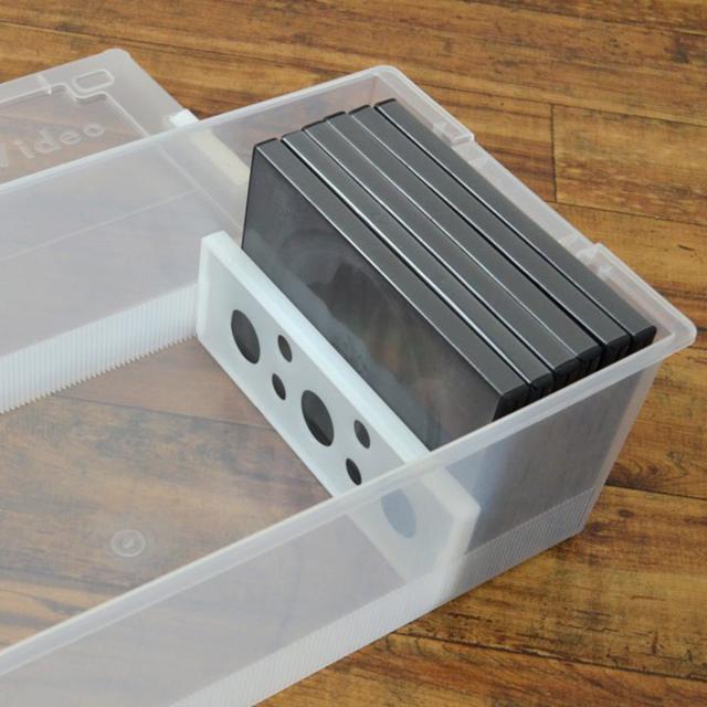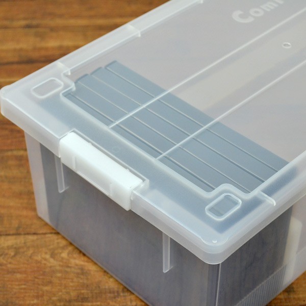 DVD・コミック・ビデオケース バックル式 収納ケース 幅23.3×奥行44.5×高さ14.8cm ( 収納ボックス メディア収納 ボックス ケース フタ付き 収納 日本製 仕切り板付き プラスチック 保管 整理 小物収納 積み重ね 漫画 VHS ビデオ )