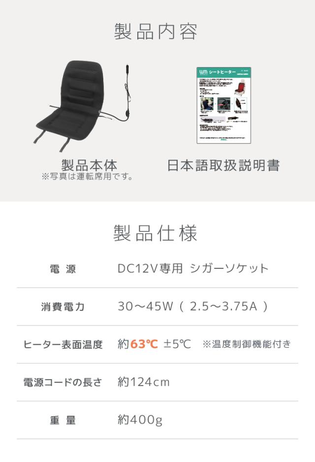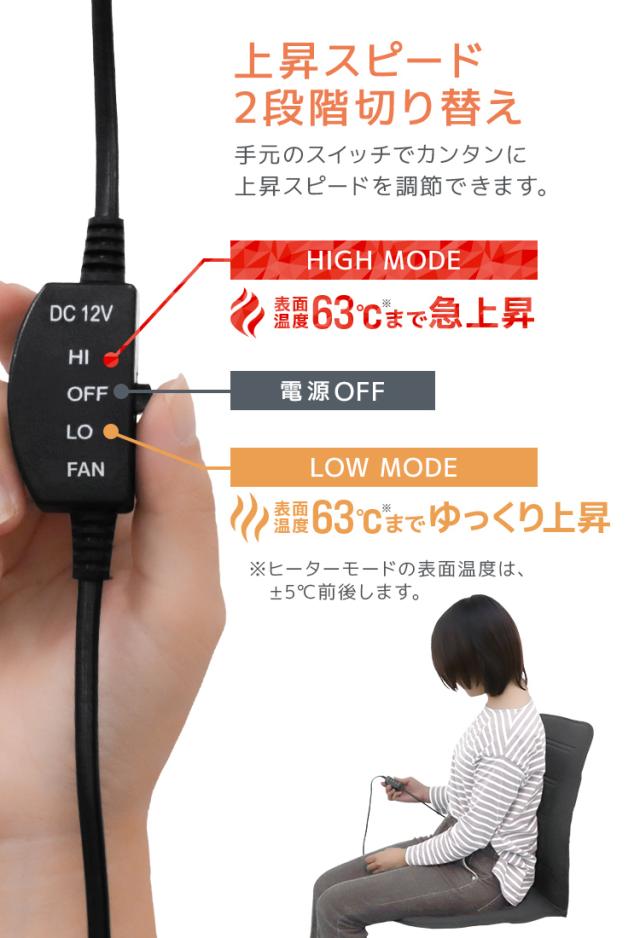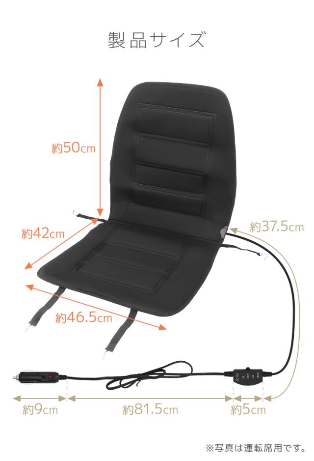 サイズ(約):縦97cm×幅48cm×厚さ1cm 電源:DC12Vシガーソケット スイッチ:HIGH/OFF/LOW 切替え 電源コード(約):127cm |