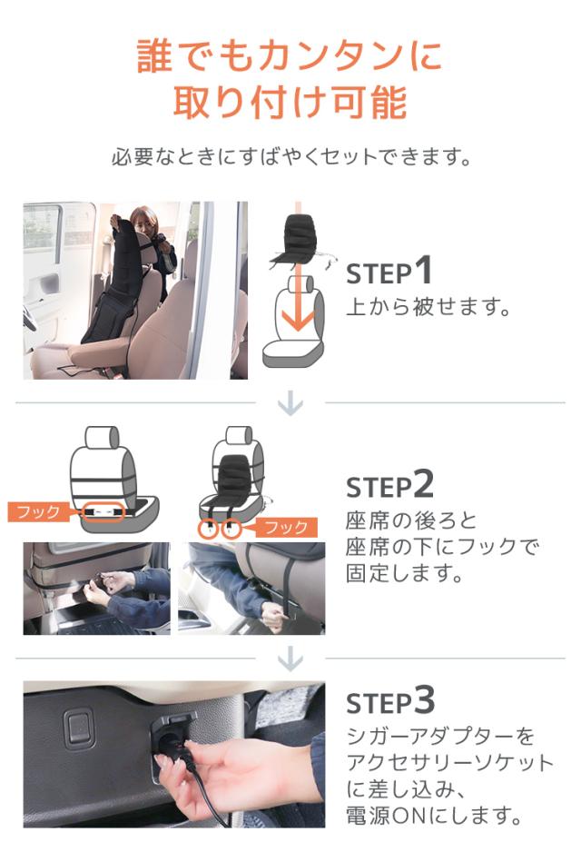 12Vシガーソケットから電源を取るタイプのシートヒーターです。
