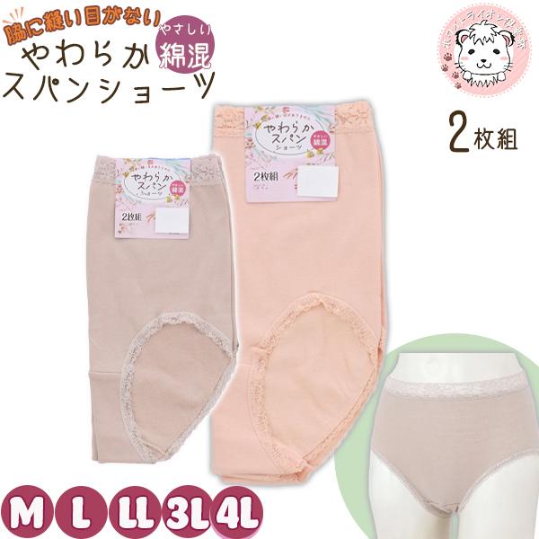 やわらか スパンショーツ 2枚組 綿混 M/L/LL/3L/4L | ショーツ レディース 婦人 女性 下着 肌着 インナー ストレッチ のびのび