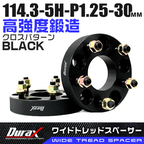 ワイドトレッドスペーサー Durax PCD114.3-5H-M12×P1.25-30mm ブラック 黒